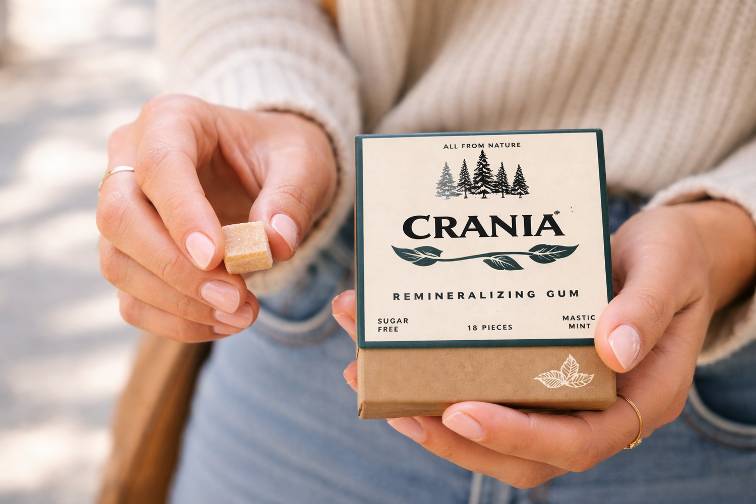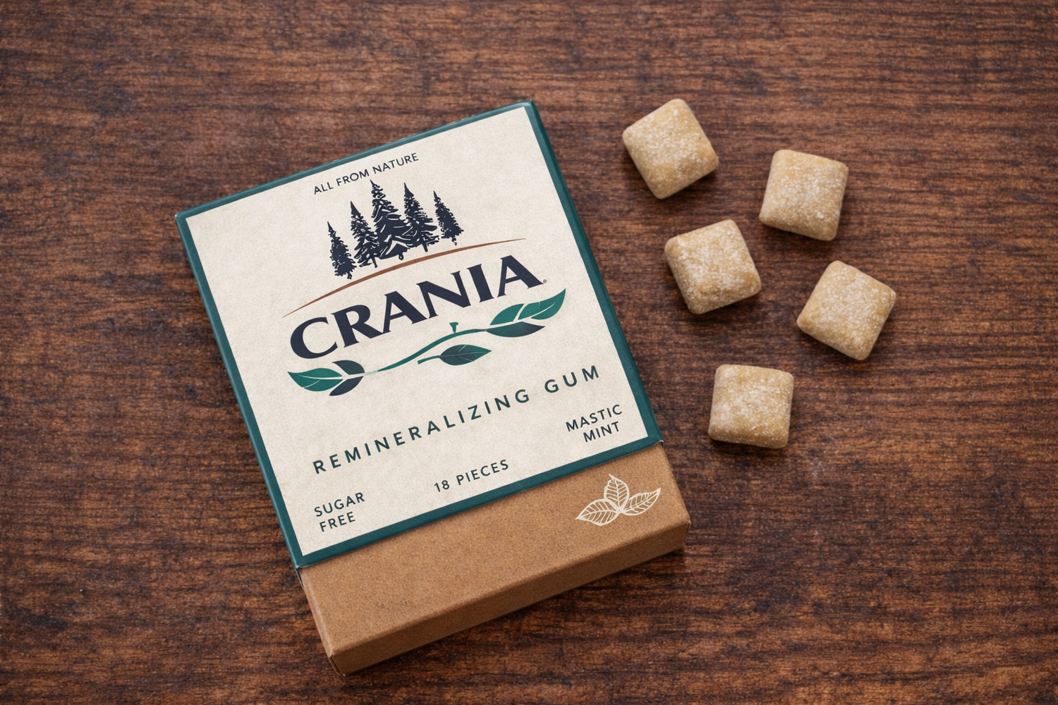 Made from natural tree saps like chicle, mastic, and spruce, CRANIA contains zero plastic, zero synthetic rubbers, and zero artificial sweeteners. Every piece is biodegradable and guilt-free, so you can care for your teeth while caring for the planet.